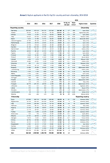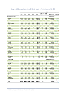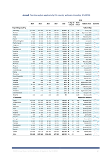 Asylum applicants in EU+ countries by reporting country and main citizenship, 2015-2019