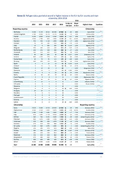 Refugee status at second or higher instance in EU+ countries by reporting country and main citizenship, 2015-2019
