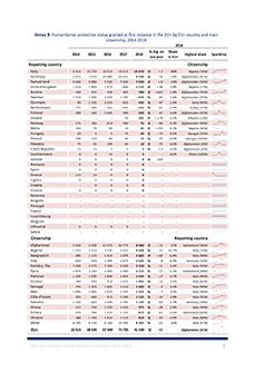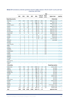 Humanitarian protection at second or higher instance in EU+ countries by reporting country and main citizenship, 2015-2019