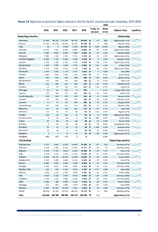 Rejections at second or higher instance in EU+ countries by reporting country and main citizenship, 2015-2019