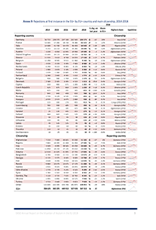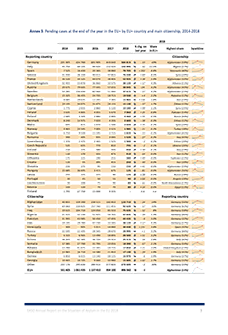 Pending cases at the end of the year in EU+ countries by reporting country and main citizenship, 2015-2019