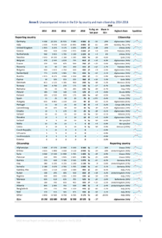 Unaccompanied minors in EU+ countries by reporting country and main citizenship, 2015-2019