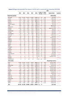 Refugee status at first instance in EU+ countries by reporting country and main citizenship, 2015-2019
