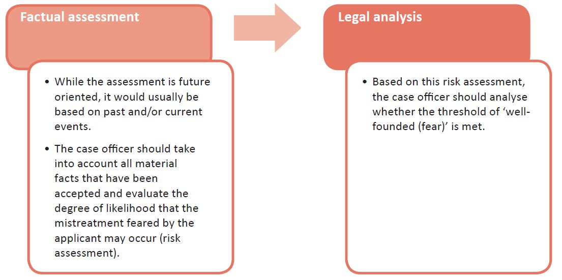 • Secondly, ‘well-founded fear’ is based on the risk assessment, which is forward-looking. Because of inherent difficulties in making a prognosis about what would happen if the applicant were to return, the risk of a subjective appreciation in this regard is high. It is, therefore, of utmost importance that the evaluation of well-founded fear is based on an objective methodology and that it avoids speculation. Such a methodology regarding the factual aspect of this assessment can be found in the EASO Practical Guide: Evidence assessment.