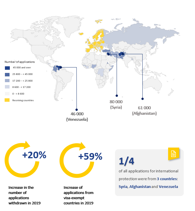 Top 20 countries of origin of applicants for international protection in EU+ countries, 2019
