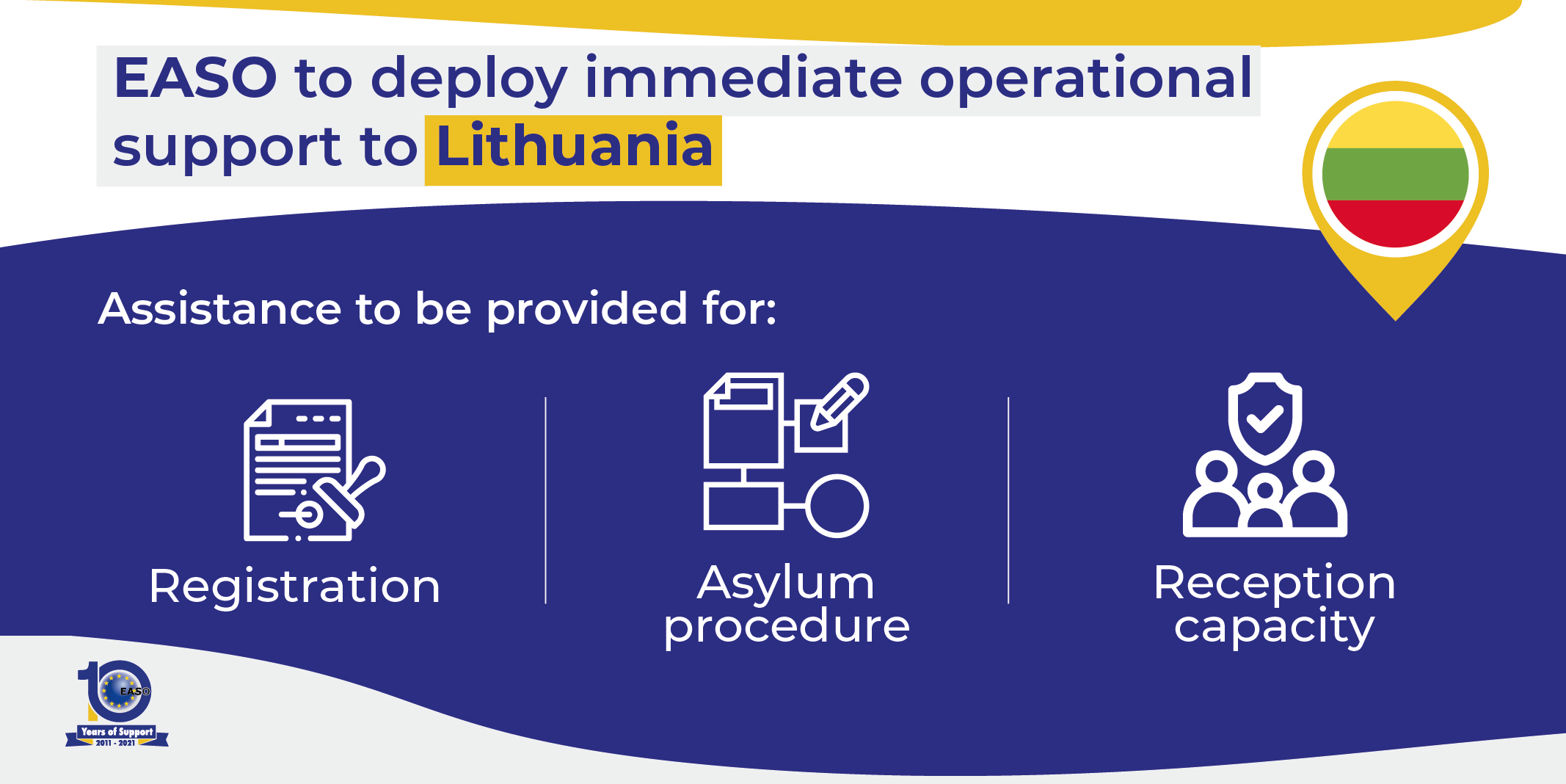 Pastaruoju metu Lietuvoje labai padaugėjo prieglobsčio prašymų, kuriuos teikia sieną kertantys migrantai iš Baltarusijos. Šiuo metu dauguma prašytojų – Irako piliečiai. EASO glaudžiai bendradarbiaus su nacionalinėmis valdžios institucijomis, taip pat su Europos Komisija ir FRONTEX, kad užtikrintų sklandų ir suderintą požiūrį.